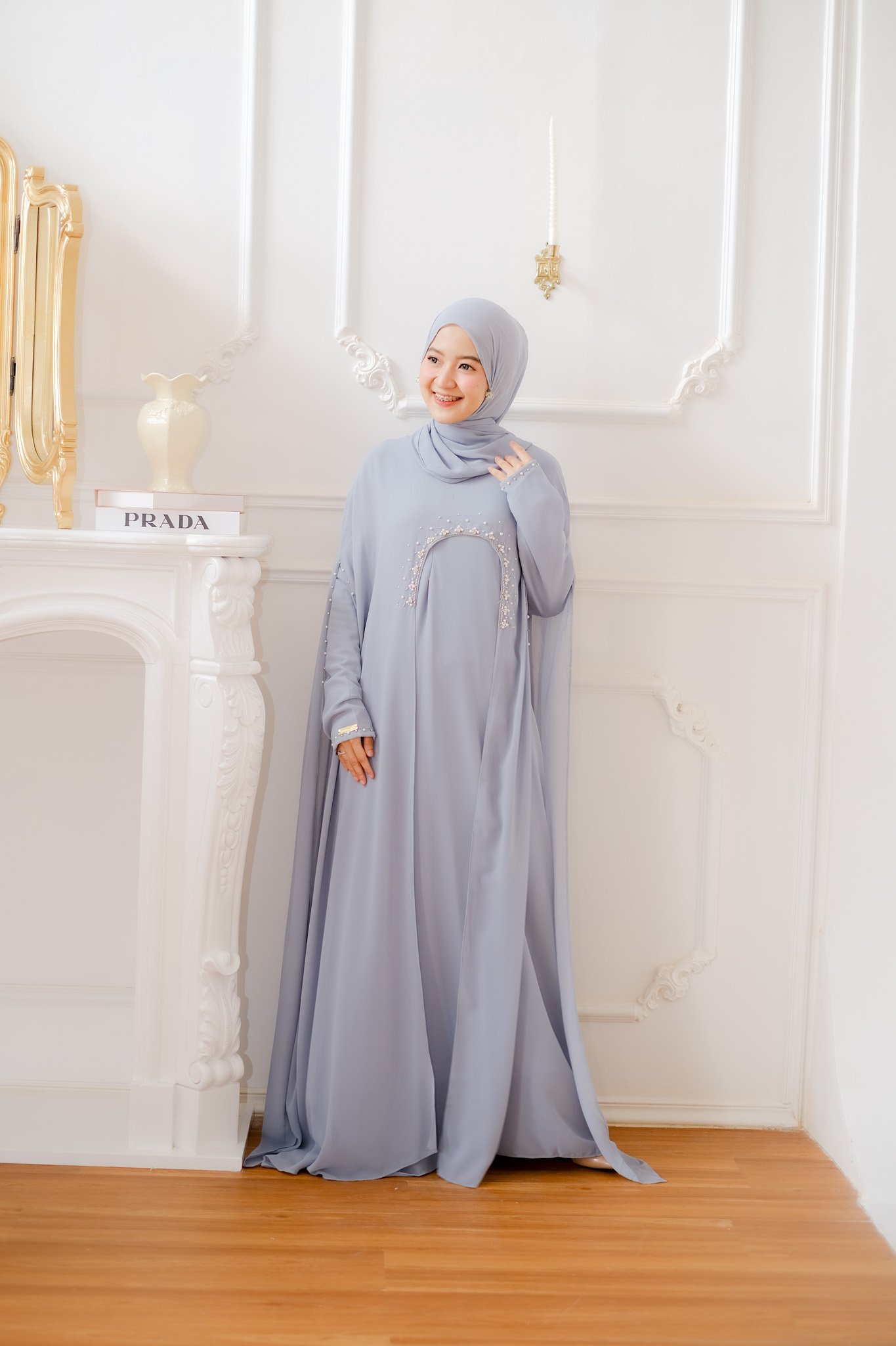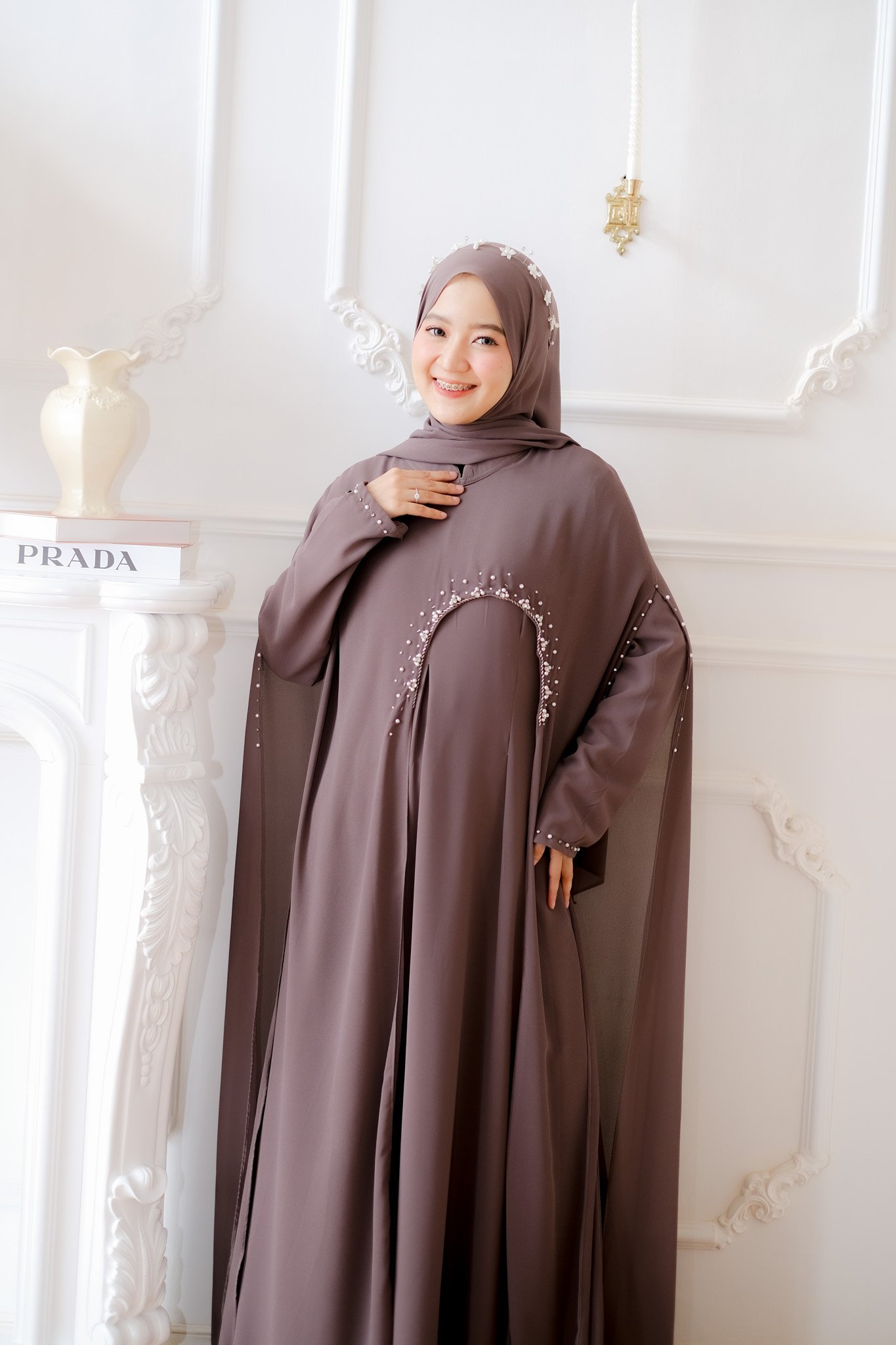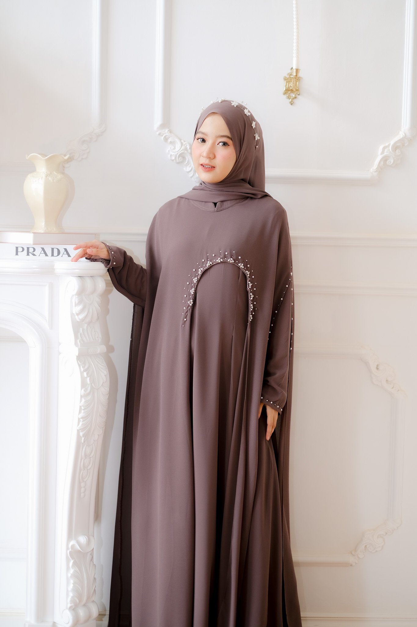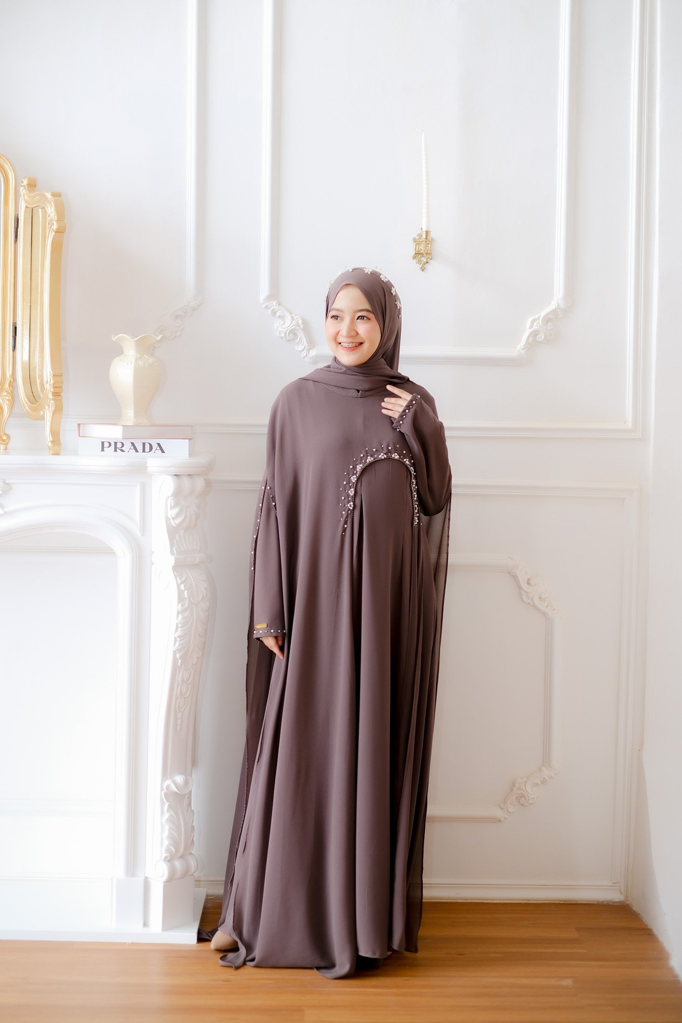 Dubai Abaya offers an opulent and refined style, using soft and flowing cerruti fabric. It is tailored to a bust measurement of 110 cm and a length of 140 cm. The rich color is highlighted by elegant and appealing sequin work (payet) across the body, offering a magnificent look that is inspired by high fashion.